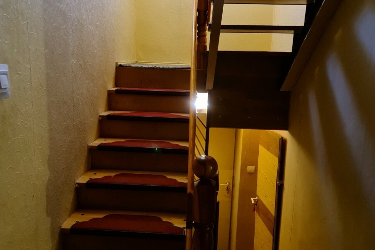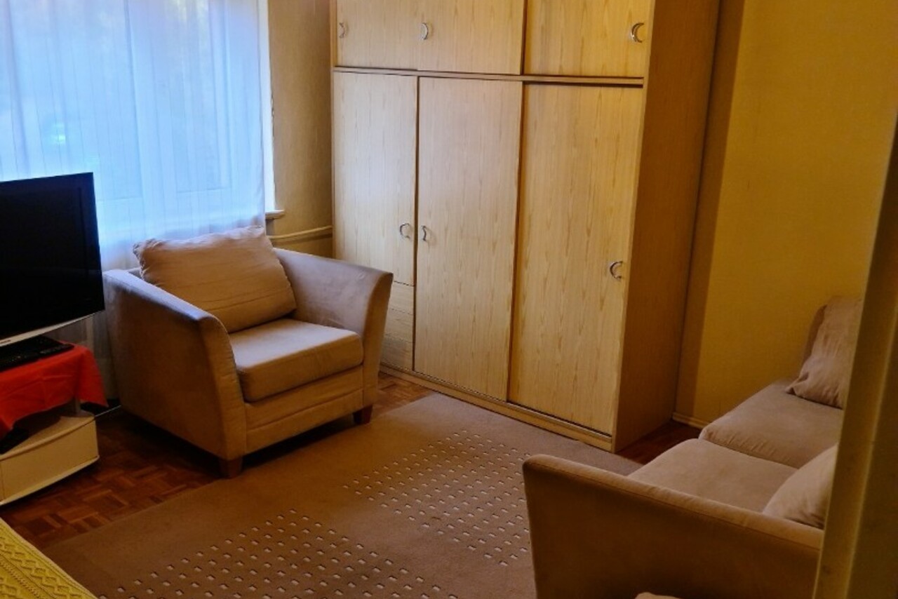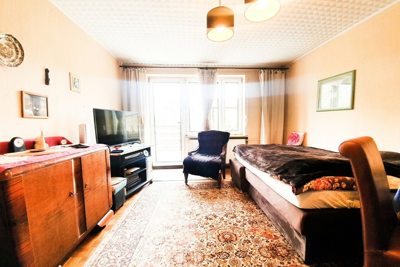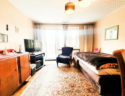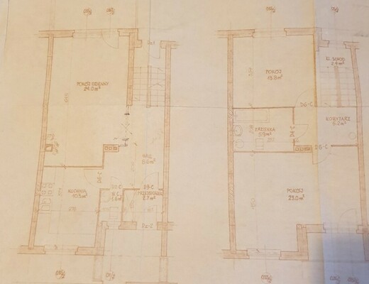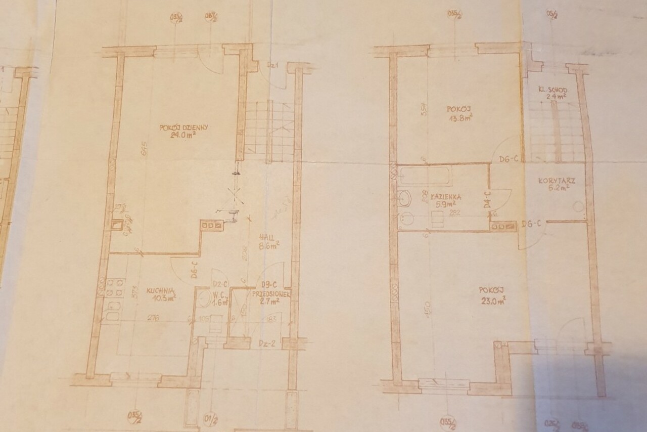 - Pokój sypialniany (23 m²) z wyjściem na balkon, aktualnie podzielony na dwa mniejsze