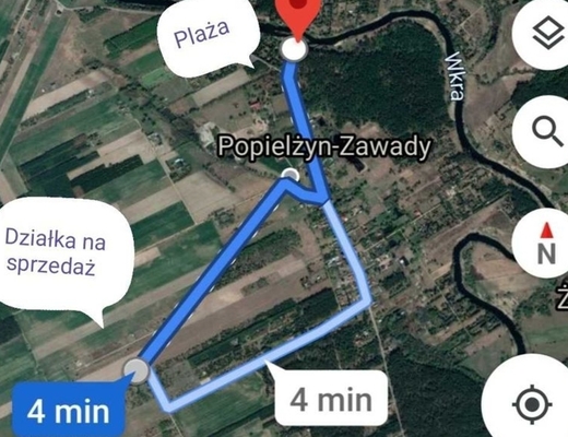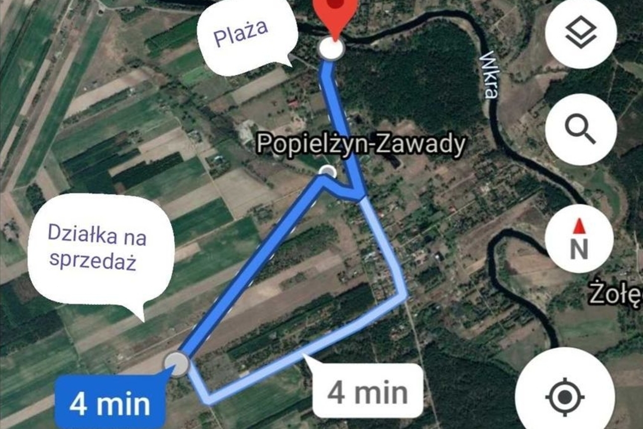 Nieruchomość położona jest ok. 500 metrów (lub 4 min) w linii prostej od rzeki Wkra. Jest tam plaża, bar, kajaki i w dobrej odległości od imprezujących ludzi. Wokół lasy, grzyby, zwierzęta.